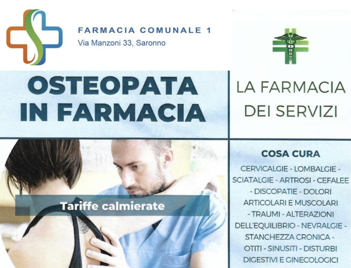 La Farmacia Comunale 1 propone “l’osteopata in Farmacia”: prenota la tua consulenza e il tuo trattamento al costo di 40€ direttamente dall’App Farmacie Saronno Servizi oppure chiamando il numero 331.2340794